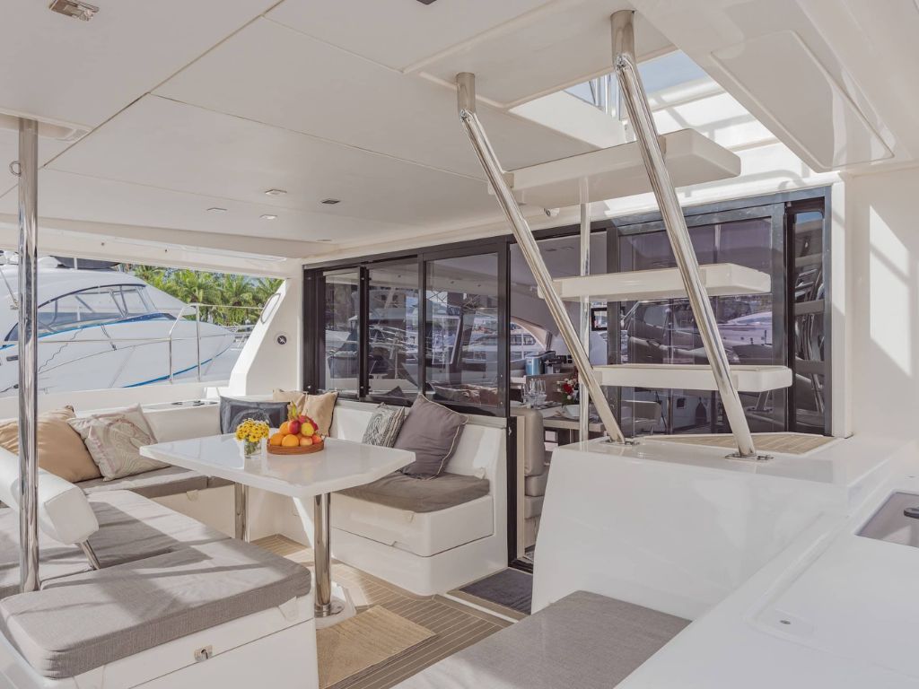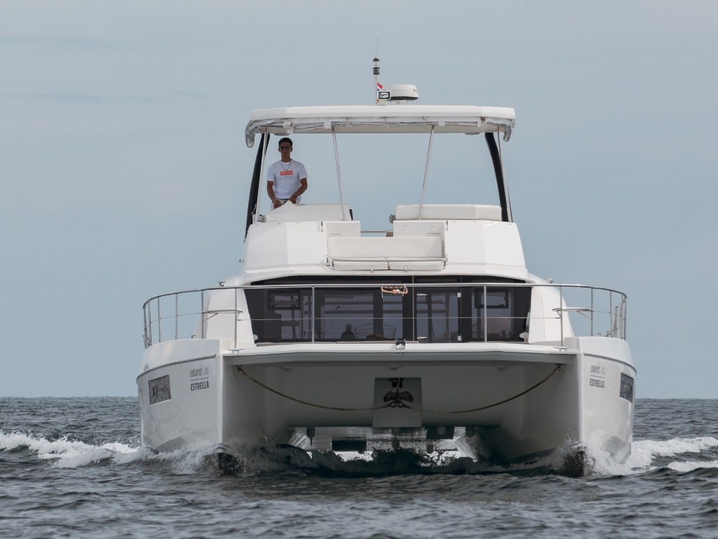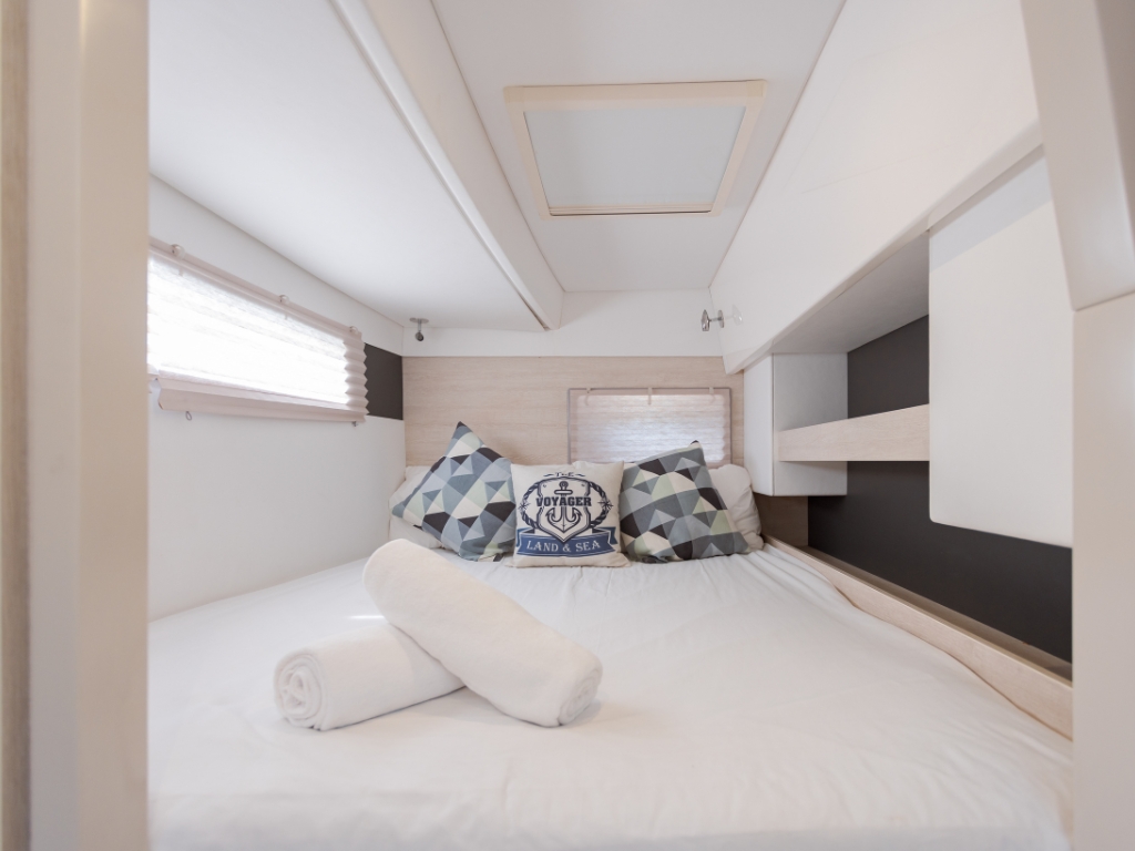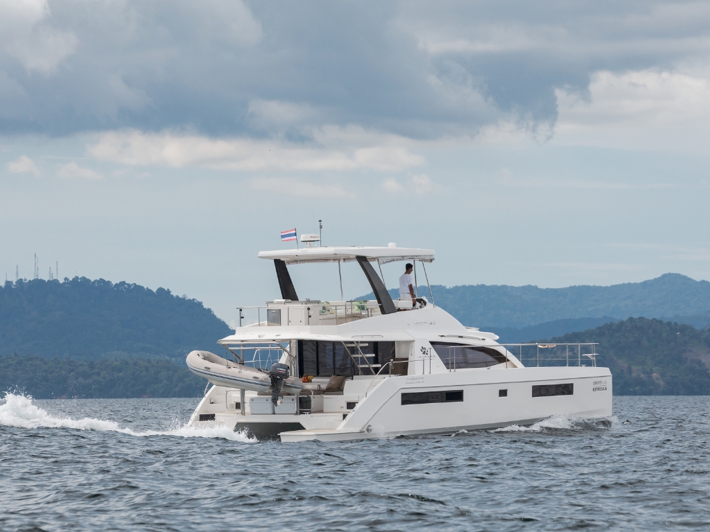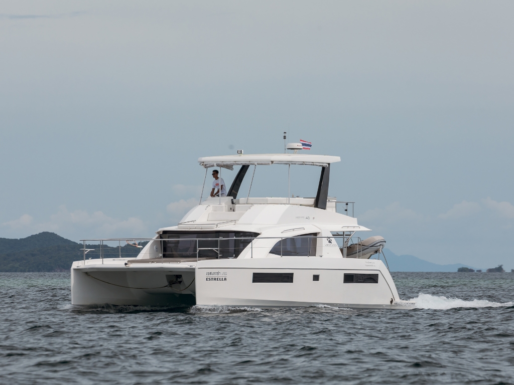 The 43-foot power catamaran “Estrella,” brand new in 2019, features a large flybridge with direct access to the sunbathing platform and an air-conditioned saloon for indoor comfort. Beautifully designed, it includes three spacious rooms and two bathrooms, accommodating up to 18 guests. “Estrella” also offers a BBQ station and various entertainment options, from snorkeling to explore the underwater world to mini water sports with a kayak and floating toys, ensuring a fun and youthful lifestyle for all aboard.