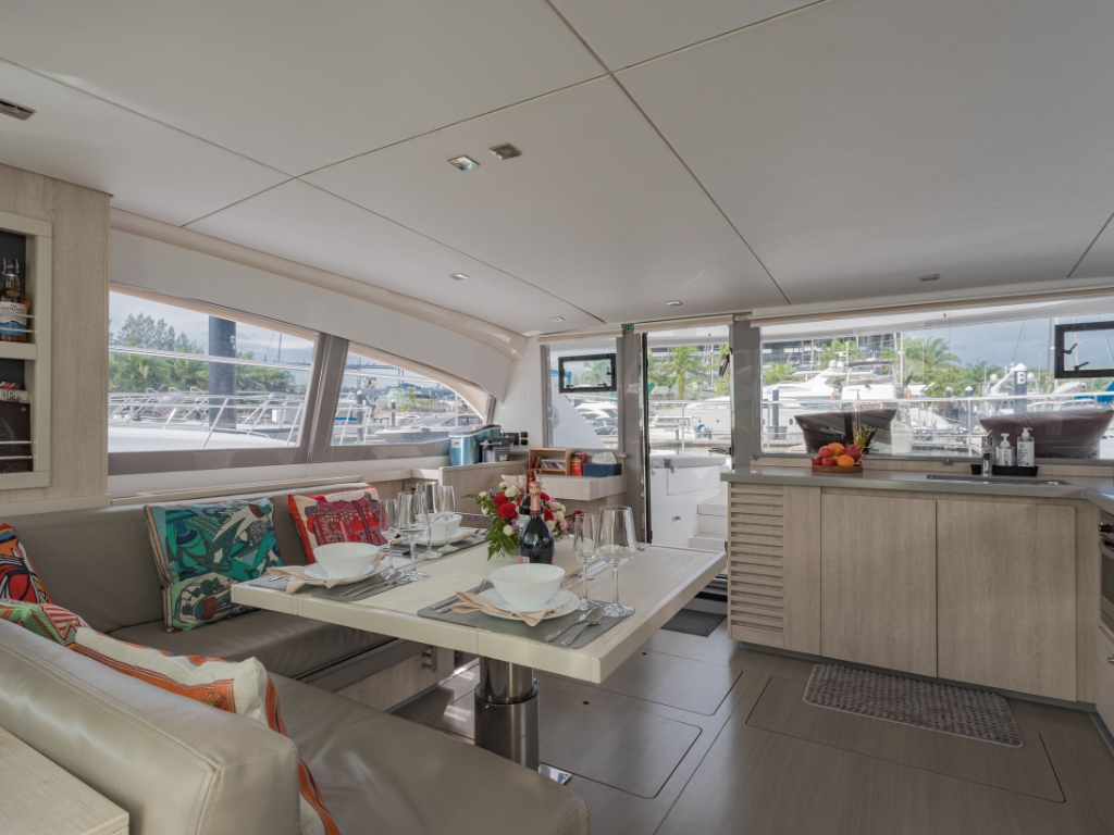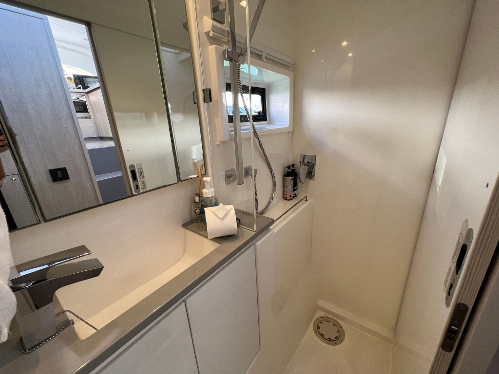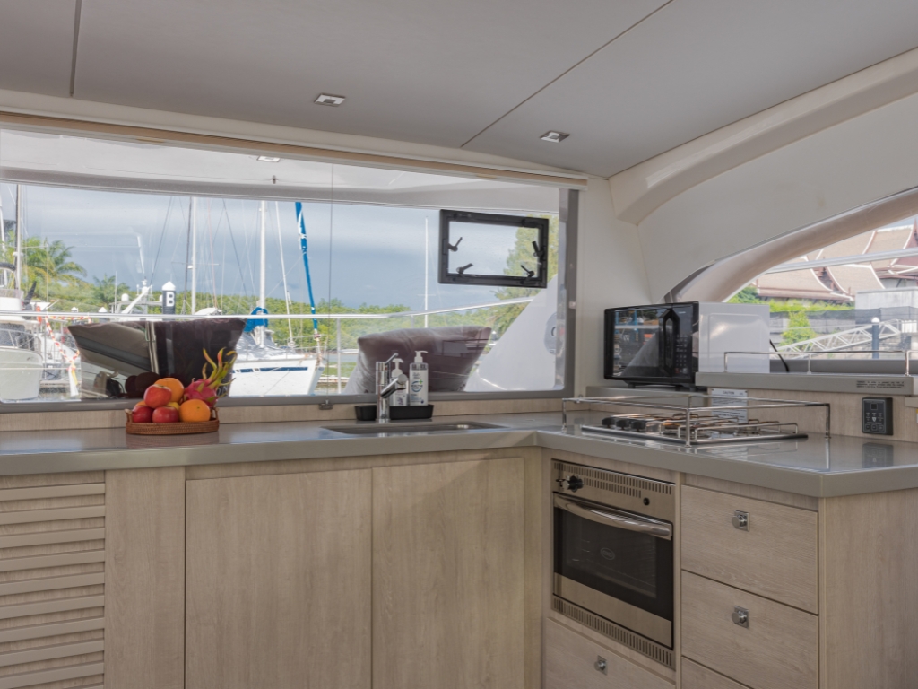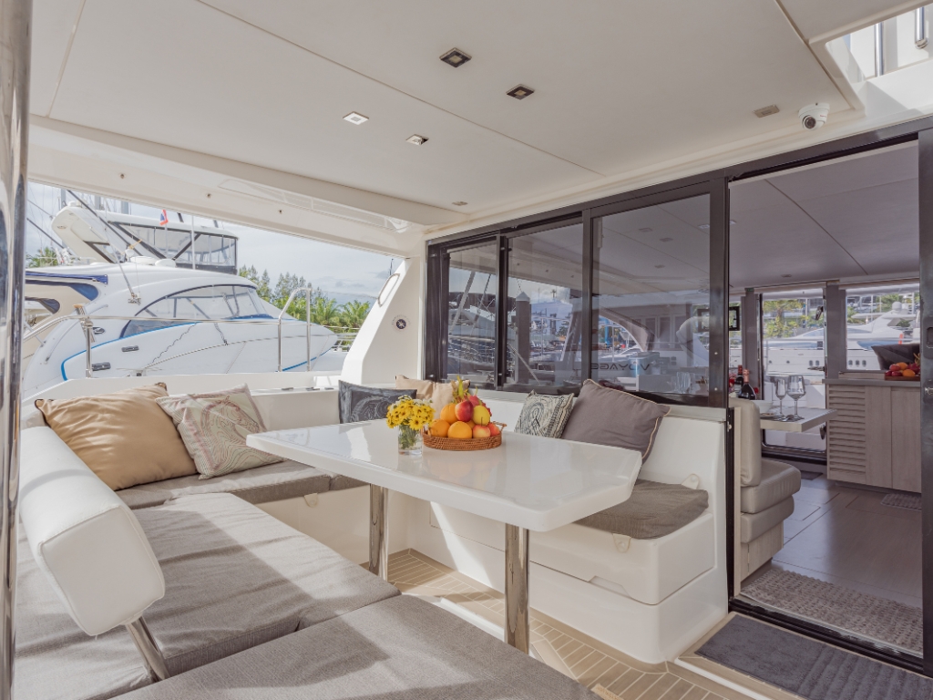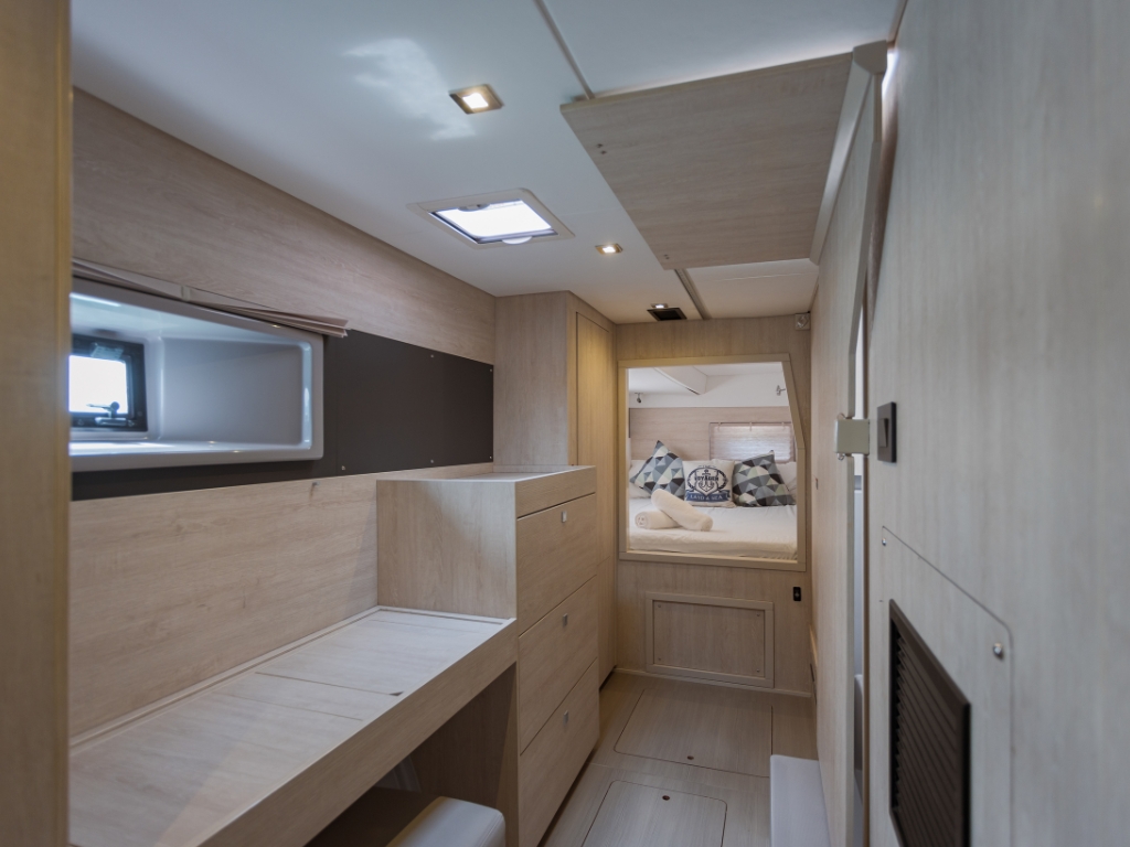 The 43-foot power catamaran “Estrella,” brand new in 2019, features a large flybridge with direct access to the sunbathing platform and an air-conditioned saloon for indoor comfort. Beautifully designed, it includes three spacious rooms and two bathrooms, accommodating up to 18 guests. “Estrella” also offers a BBQ station and various entertainment options, from snorkeling to explore the underwater world to mini water sports with a kayak and floating toys, ensuring a fun and youthful lifestyle for all aboard.