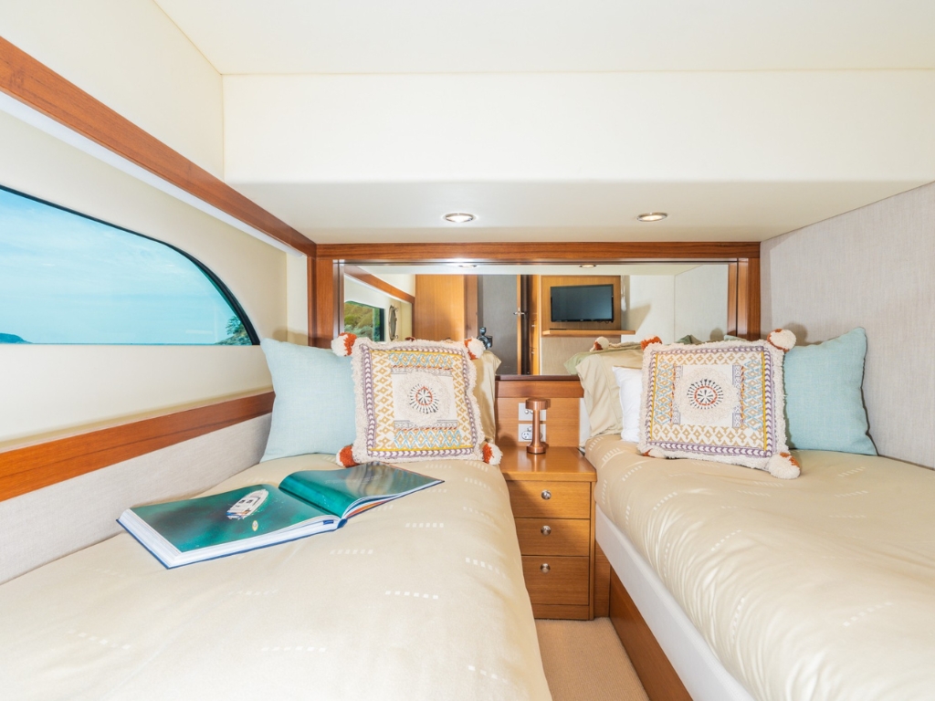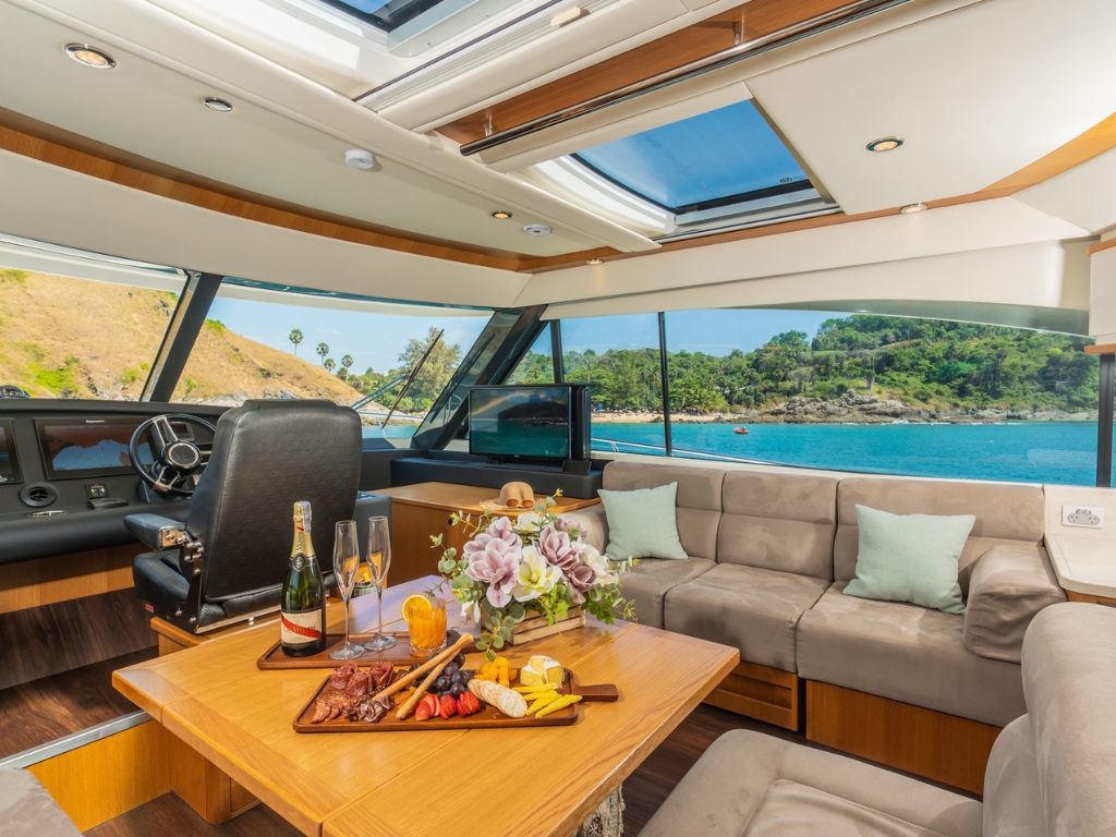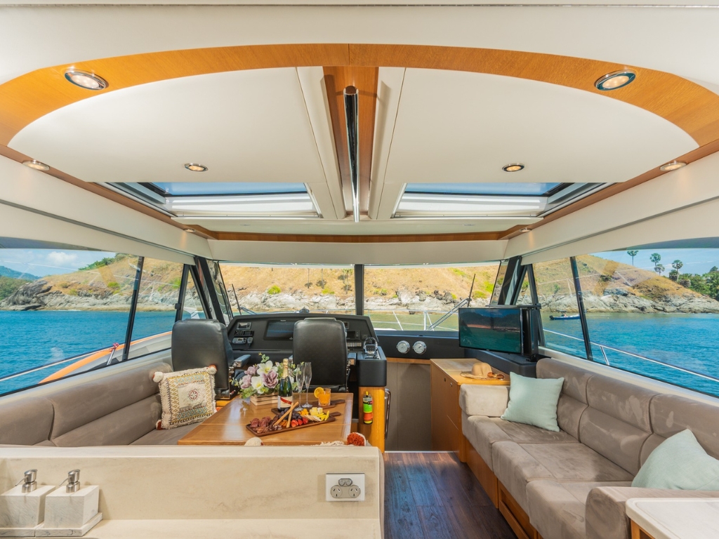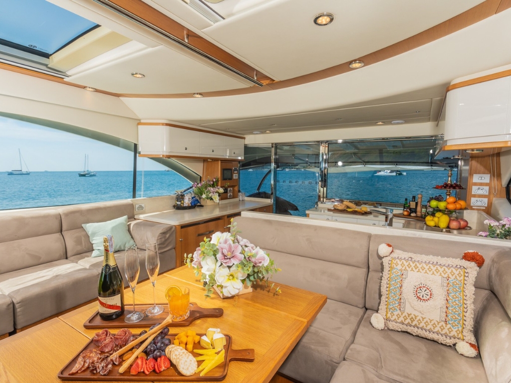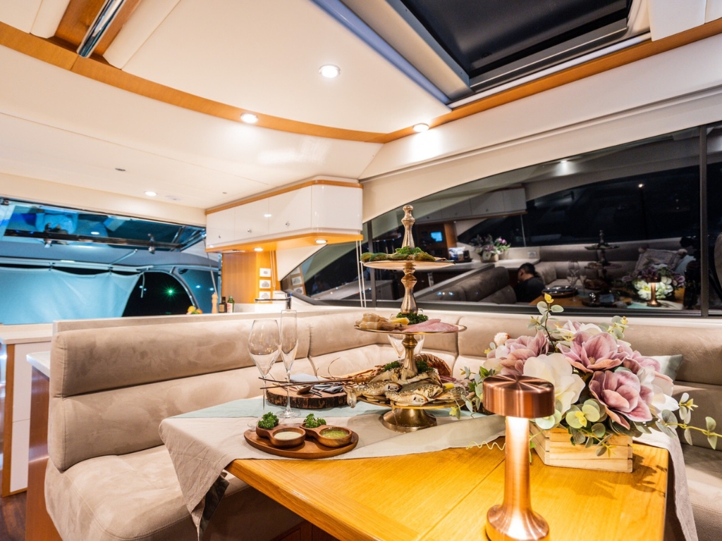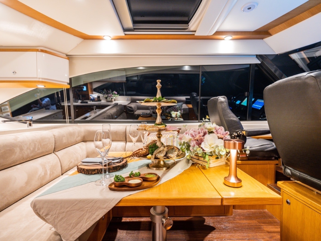 “Happy Ours” is a robust yet elegant 58ft blue water motor yacht designed for stylish, comfortable, luxurious, and safe cruising. This luxury motor boat offers gorgeous cabins that provide top-tier guest accommodation for up to 8 guests across 3 cabins, complete with 2 bathrooms and full air-conditioning. The well-built and functional saloon is equipped with a Bluetooth sound system, ensuring you’re always connected to the rhythm of the ocean during your journey.
