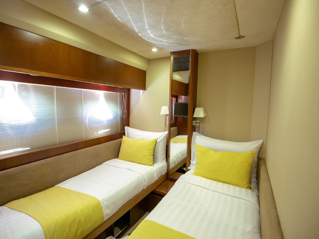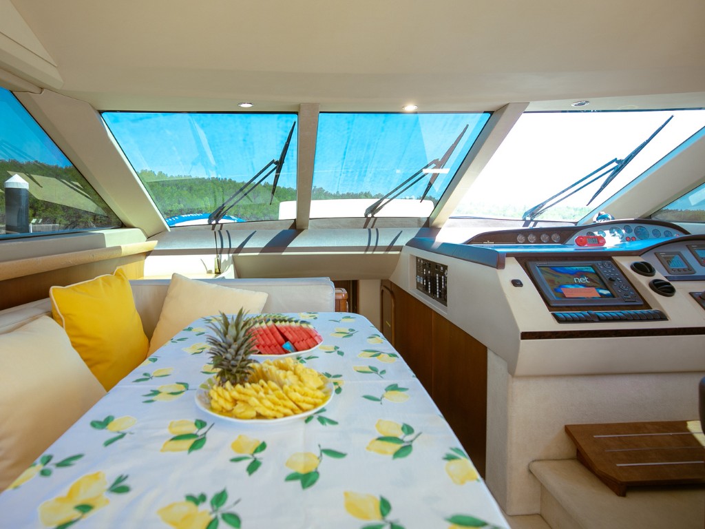 Princess 54 offers simple yet comfortable cruising at an affordable rate. Refitted in 2021, this yacht is in excellent seaworthy condition and is equipped with modern luxuries and comforts. The interiors are stunning, extremely comfortable, and fully air-conditioned. With 3 spacious cabins, she can accommodate up to 12 passengers.